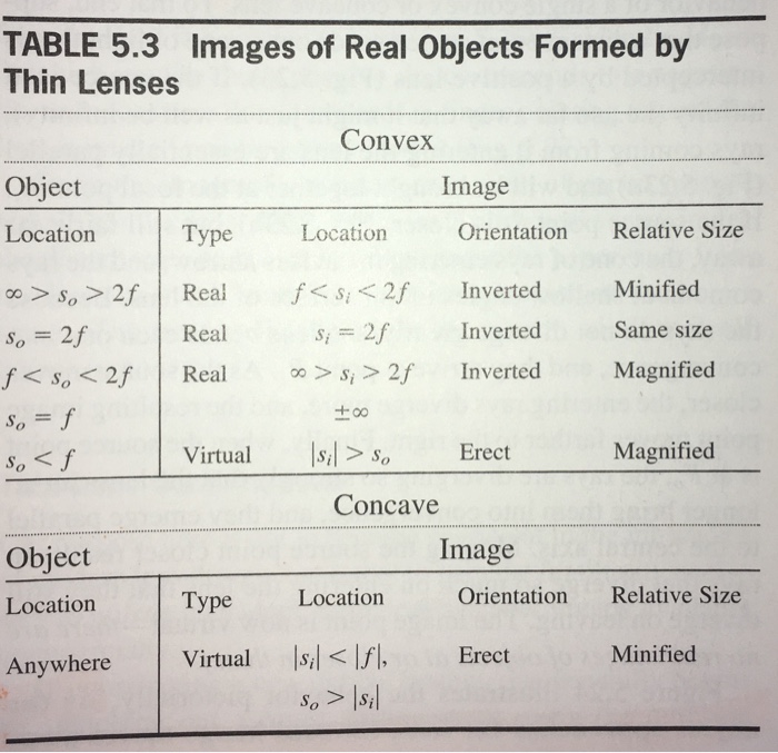 Solved: Prove The Conclusions In Table 5.3 For Convex Lens... | Chegg.com